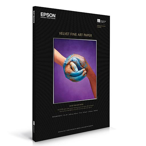 The velvet surface of Epson Velvet Fine Art Paper is a favorite of photographers and artists alike, offering a unique museum quality feel. Combining impressive fine art cotton with Epson technology has created a paper that will be a classic for years to come.